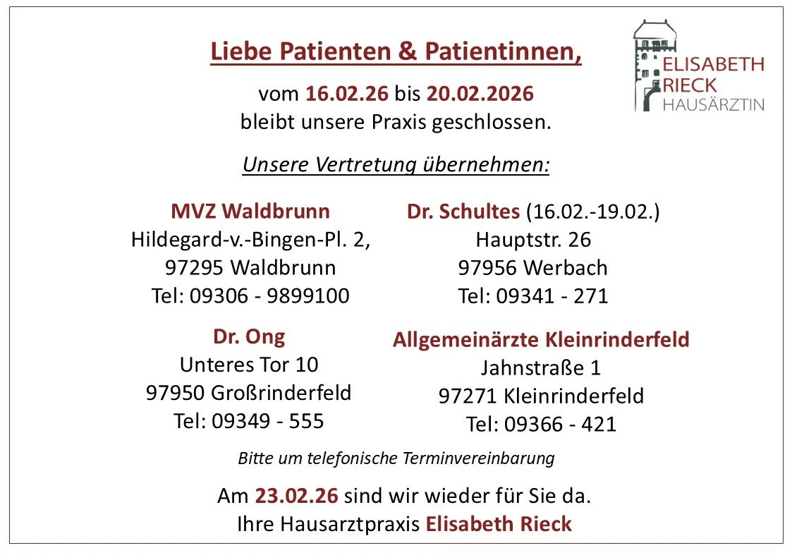 Für telefonische Besprechungen (z.B. der Blutwerte), melden Sie sich bitte von 11:30 -12:00 Uhr zur Telefonsprechstunde an. Frau Rieck wird Sie nach der Sprechstunde zurückrufen.